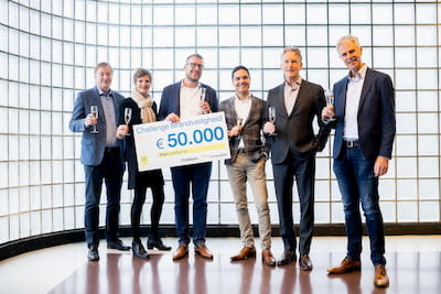 ‘LeefSamen’, een slimme sensor die familie, vrienden of buren alarmeert via een app, is dé winnende innovatie van de challenge brandveiligheidsinnovaties, georganiseerd door Woonzorg Nederland, Habion en Wooncompagnie. De woningcorporaties stellen € 50.000,-- ter beschikking om pilots op te zetten om de effectiviteit van de innovatie te bewijzen en waar nodig te verbeteren. Anne van Grinsven, manager Strategie & Organisatie van Woonzorg Nederland reikte de symbolische cheque uit aan John van Adrichem, directeur Quality Creations en Bas van der Kolk, directeur Akkedeer. Samen ontwikkelden zij ‘LeefSamen’.