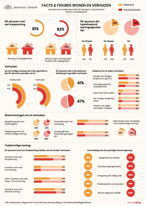De huidige krappe huizenmarkt versterkt dit, maar ook in een meer ontspannen markt blijft het probleem bestaan. Het gaat namelijk niet om kleine aantallen. Op dit moment zijn er al 1.2 miljoen (grote) woningen waarin 50-plussers wonen en waaraan aanpassingen nodig zouden zijn om ervoor te zorgen dat de 50-plussers die er in wonen, dat kunnen blijven doen. Dit aantal zal in de toekomst nog flink gaan stijgen. Toch geeft maar een kwart van de 50-plussers aan te willen verhuizen.