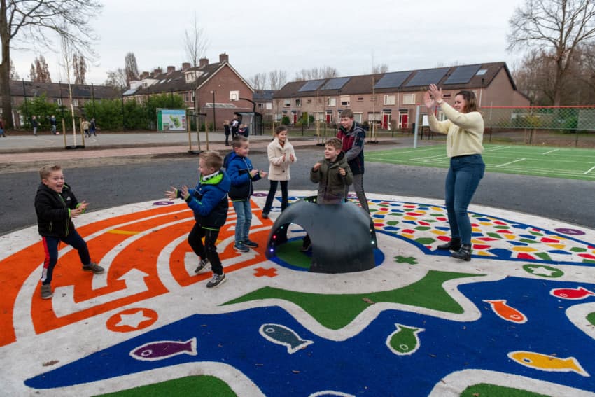 "Novasports bedacht ‘Moby’; een interactieve speelkoepel die licht en geluid maakt en via sensoren reageert op beweging. Daarbij is het mogelijk om op een interactieve manier allerlei sporten en spellen te spelen."